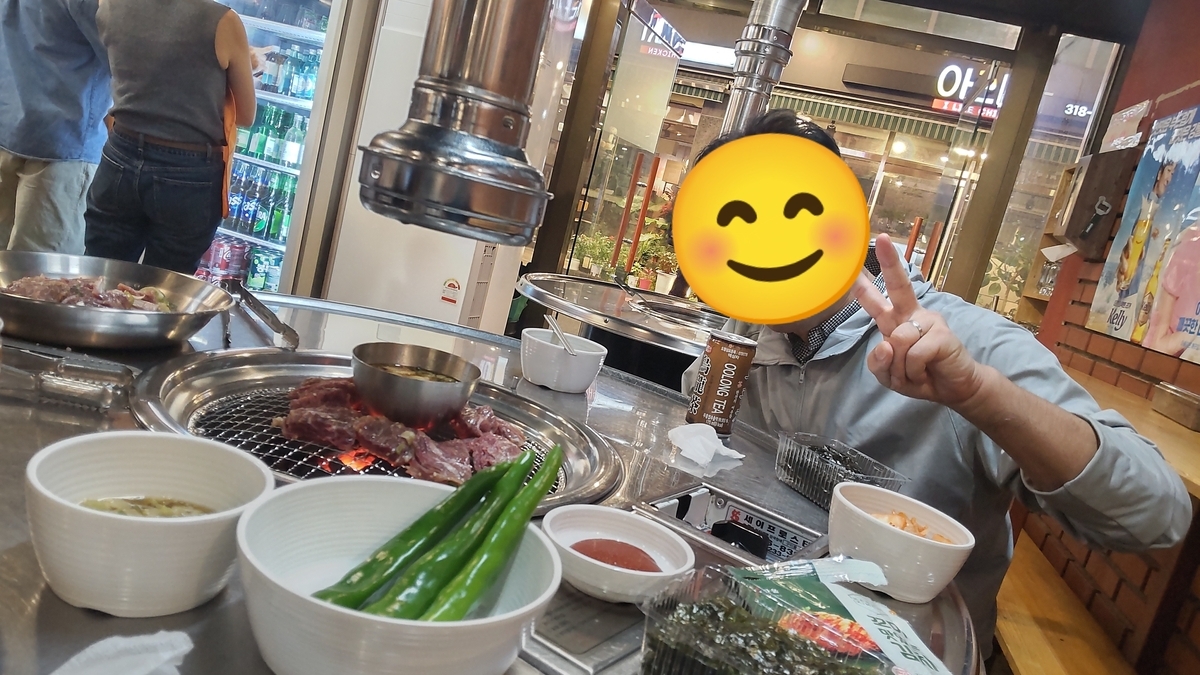 看板の日本語に「ソ」が抜けています…。メニューは特になくて、人数分のカルビが出てきます😅