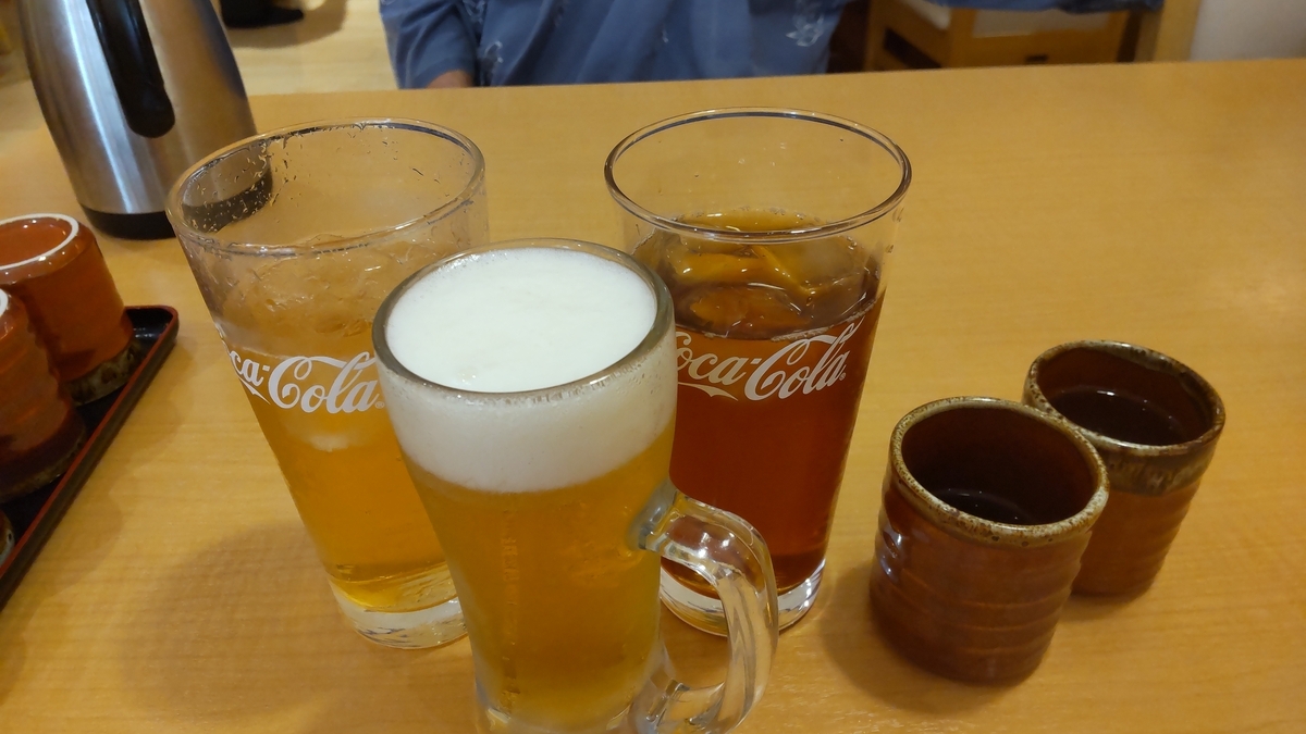 ダンナ👨はお酒は飲まないのでソフトドリンク2杯。モモはビールの後で熱燗🍶