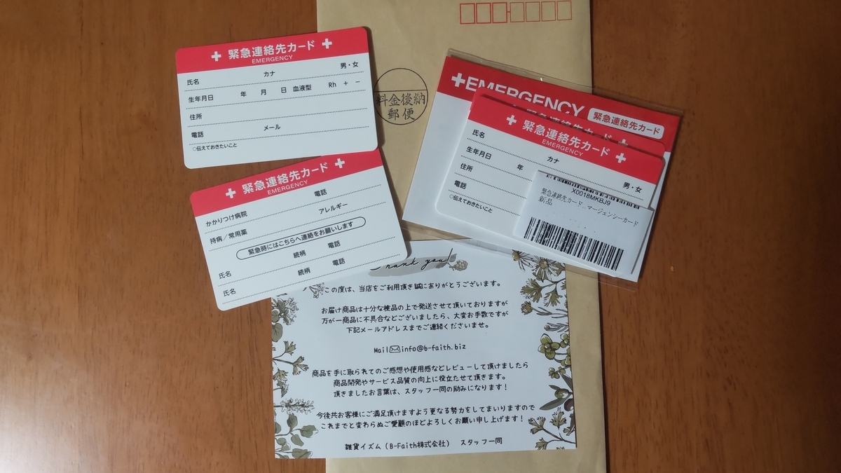 10枚入りでボールペンで記入できます。シニアのモモとダンナも、書いて財布に入れておこうと思います😅